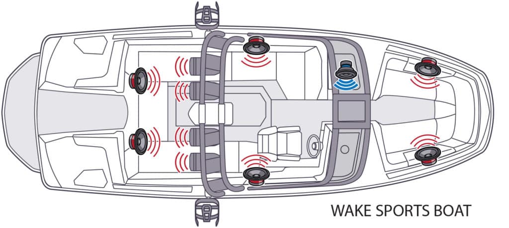 For best sound quality and volume, speakers should be mounted as high as possible and directed at the ears of the passengers listening. Avoid speaker pairs that point at each other; they’ll simply cancel out each other’s sound. Instead, staggered positions typically work best. That can be a challenge with many boats. “With older boats especially, speaker placement was sort of an afterthought,” notes Roswell’s Colin Brumbaugh. “Unless you want to do extensive fabrication, you’re kind of stuck with the stock speaker location.”