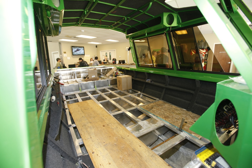 A comfort item that few whitewater jet-boat enthusiasts would live without is an air-ride captain’s chair. BWC buys these from Freightliner but reupholsters them with marine-grade fabrics color-coordinated with the boat interior.