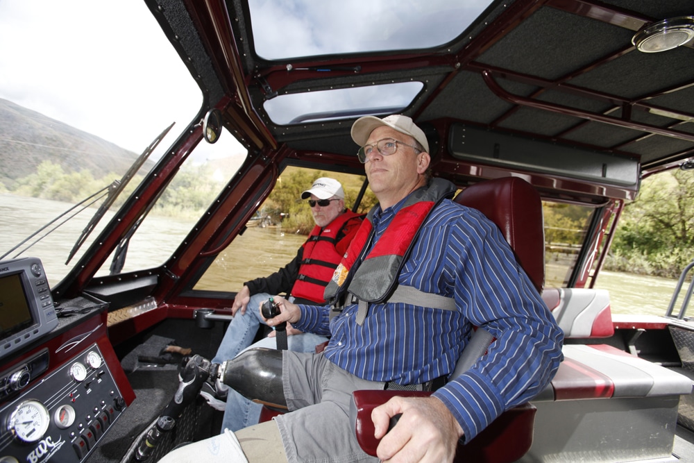 In fact, Johnson often goes solo, handling tasks like towing, launching and beaching his 24-foot Bohnenkamp’s Whitewater Customs (BWC) jet boat in a river’s unrelenting current. About the only special adaptation on his boat is a custom electric switch to shift in and out of reverse.