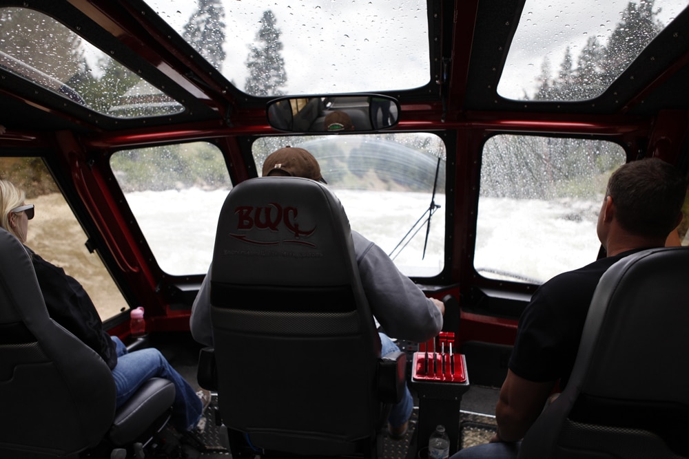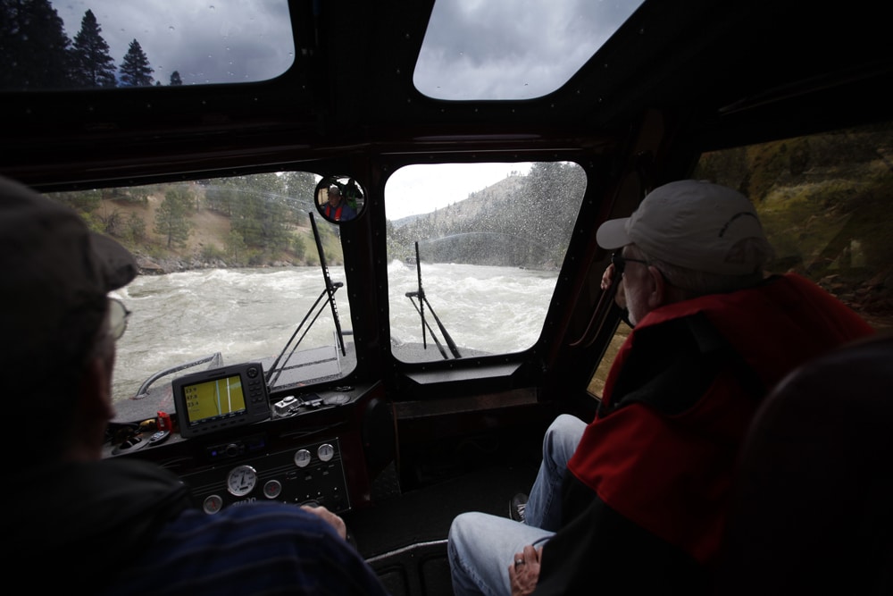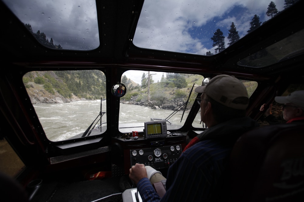 The cabin on a whitewater jet boat offers more than just crew comfort. As Johnson said, “It keeps the boat from sinking.” Without it, water would pour in over the bow with each wave, as we found out the hard way.