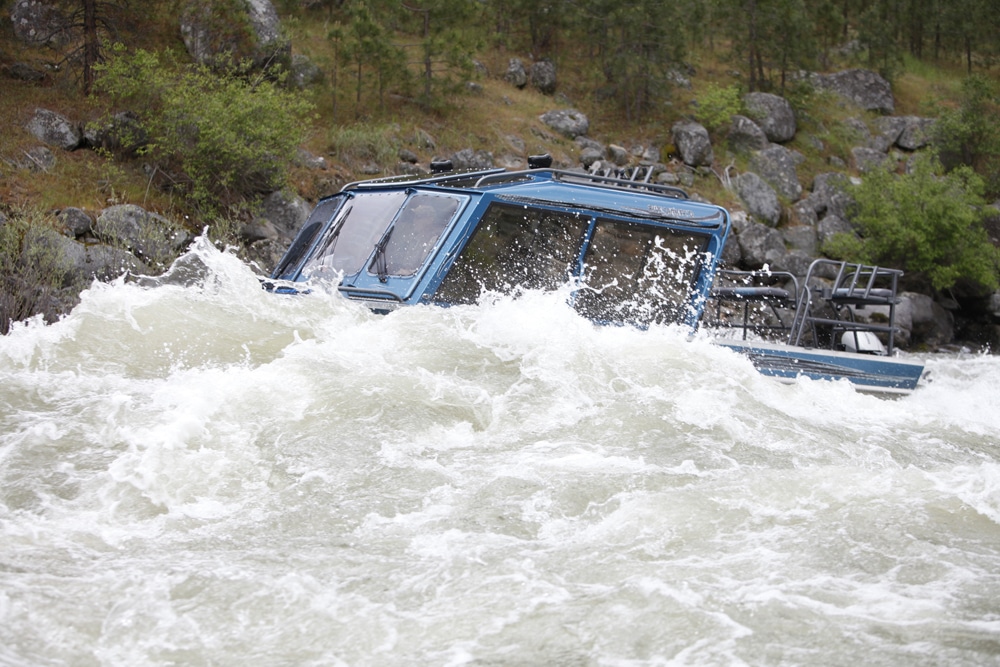 Try running these rivers in any other kind of powerboat and you’ll be macerated in minutes. Yet, whitewater jet boats can blast through boiling rapids and need only scant inches of water to skim across riffles.