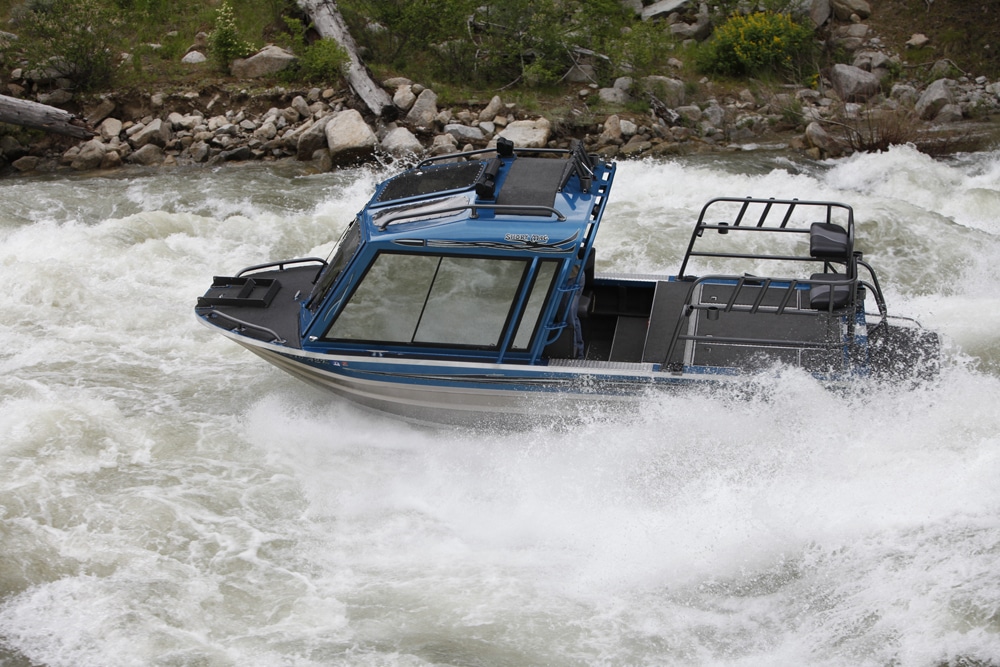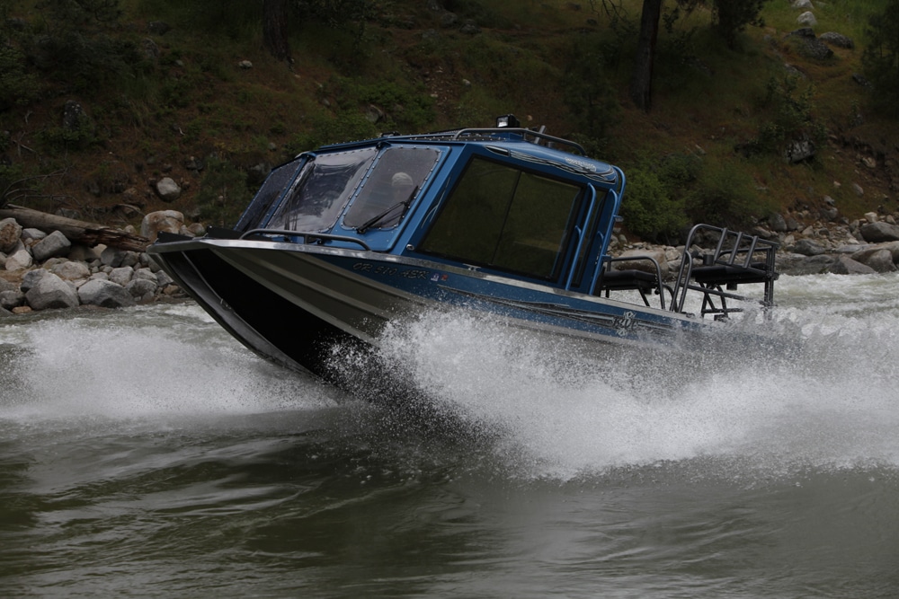 Skillful piloting is one thing, but it also takes a specialized boat to successfully dance on these rivers. They’re known as whitewater jet boats, hailing from several Western builders such as Duckworth Boats (duckworthboats.com), Hells Canyon Marine (hellscanyonmarine.com), Kingfisher (kingfisherboats.com), Rogue Jet (roguejet.com) and Weldcraft (weldcraftmarine.com), as well as BWC (whitewatercustoms.com).