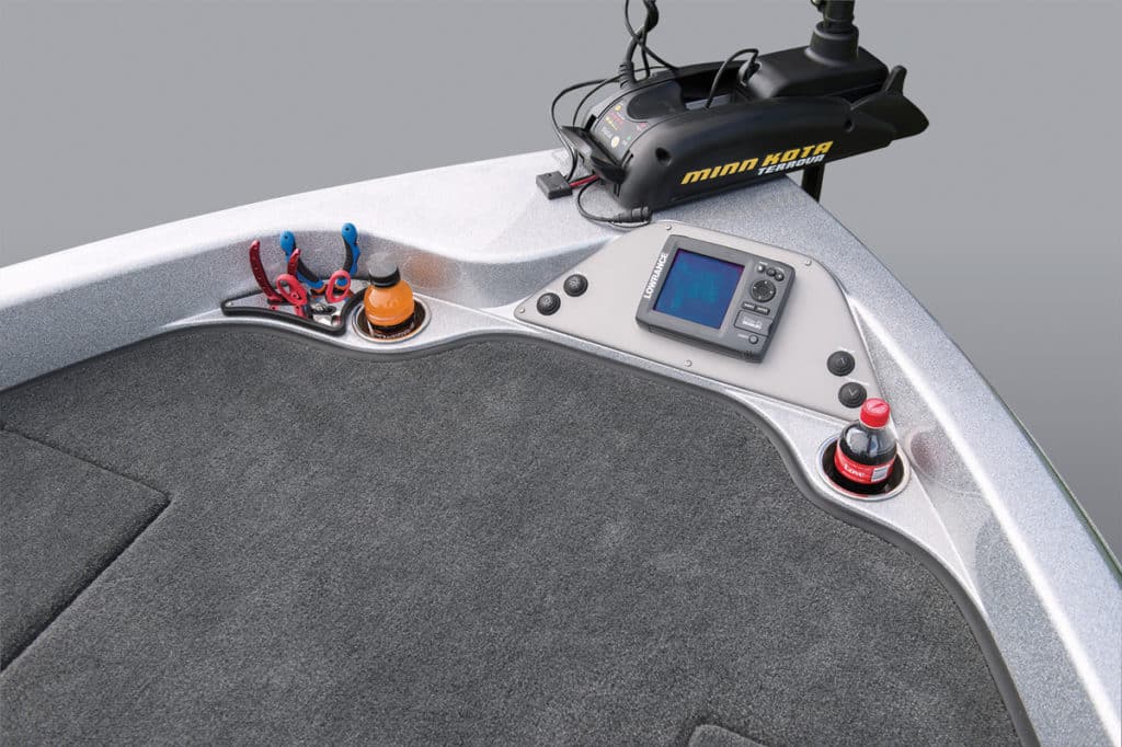 Our test boat was equipped with an onboard charger to keep the trolling-motor batteries — and the fishermen — happy. An easy-to-access circuit breaker makes the boat effortless to store in the garage and get ready on Friday for a weekend of fun. Getting it to the water is easy too, thanks to a custom-fit-and-colored trailer, designed to make its ride on the road as soft as yours is on the water.