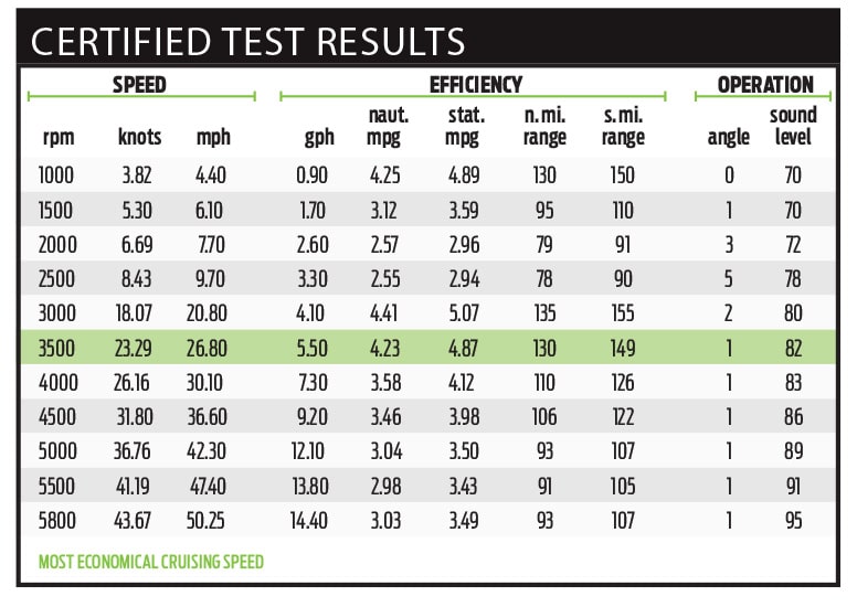 A full-width, tempered-glass windshield completes the sporty day-cruising look and will keep a chilly evening cruise to waterfront dining far more pleasant. An Infinity marine stereo adds to the ambience on board. The one on our tester had bluetooth connectivity.