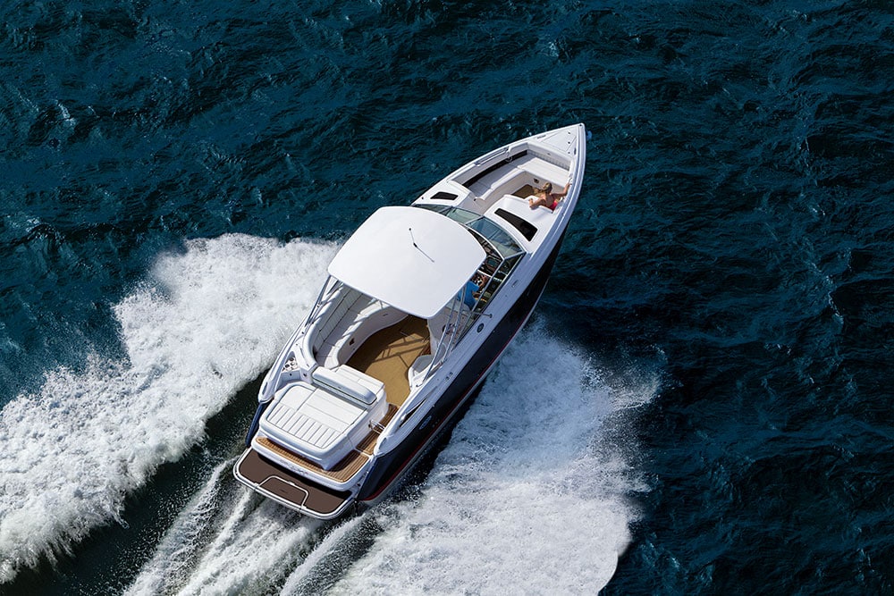 This flagship bowrider is spacious topside with a cozy cabin below.